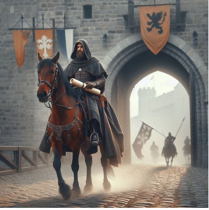 Image prompt: Messenger arriving with a news dispatch.